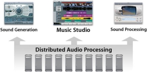 --分布式音頻處理,可以使用多臺(tái)通過以太網(wǎng)連接的蘋果電腦同時(shí)處理音頻數(shù)據(jù),這使利用起Logic全部的128個(gè)音頻通道成為可能。分布式音頻處理就是允許使用多臺(tái)電腦的共同運(yùn)算完成一個(gè)復(fù)雜的音頻處理工作,這確實(shí)是Logic高人一等的亮點(diǎn)。